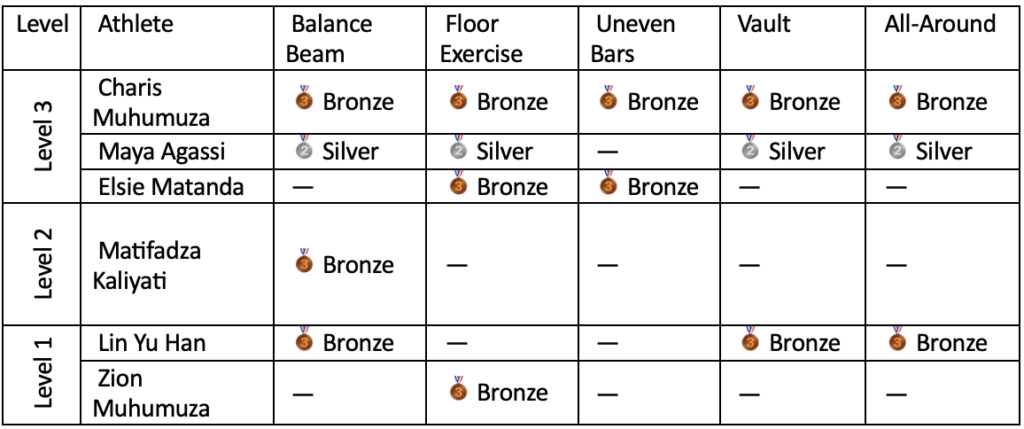 For many of our gymnasts, this was their first time competing internationally. Despite the new environment, Team Uganda dominated several podium spots with high execution scores, particularly in floor routines and the balance beam.